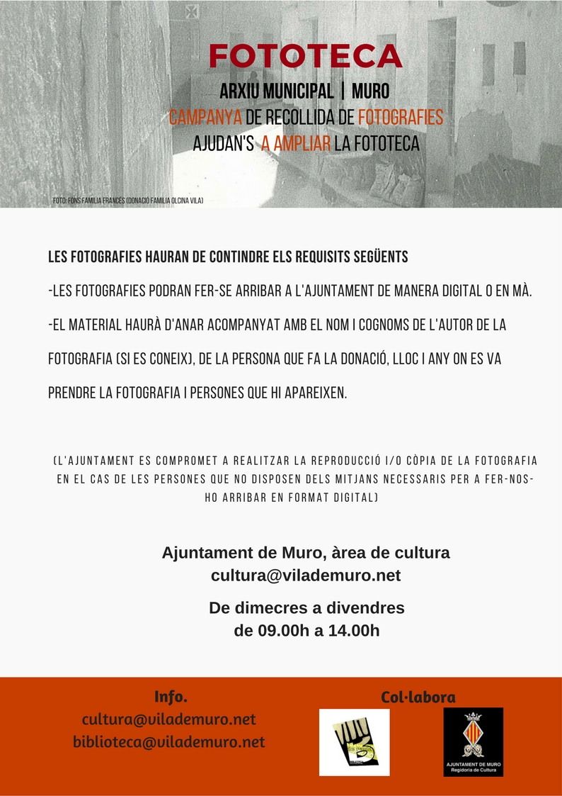 Tornar a Muro | Col·loqui de toponímiaL’Ajuntament de Muro vol encetar un procés de reflexió col·lectiva sobre el nom oficial del nostre municipi. Actualment, “Muro de Alcoy” continua sent una denominació, oficial, heretada d’un reial decret del 1916, imposat sense consulta ni consens, i que…