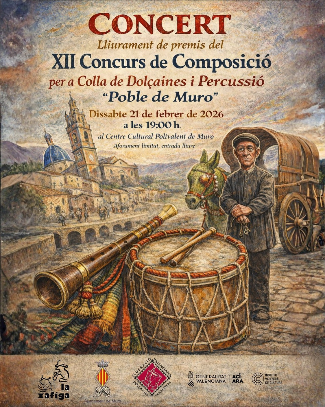 La Xafigà de Muro interpretarà en directe les obres guardonades d’aquesta dotzena edició del concurs, organitzat per l’Ajuntament de Muro i la Federació Valenciana de Dolçainers i Tabaleters.