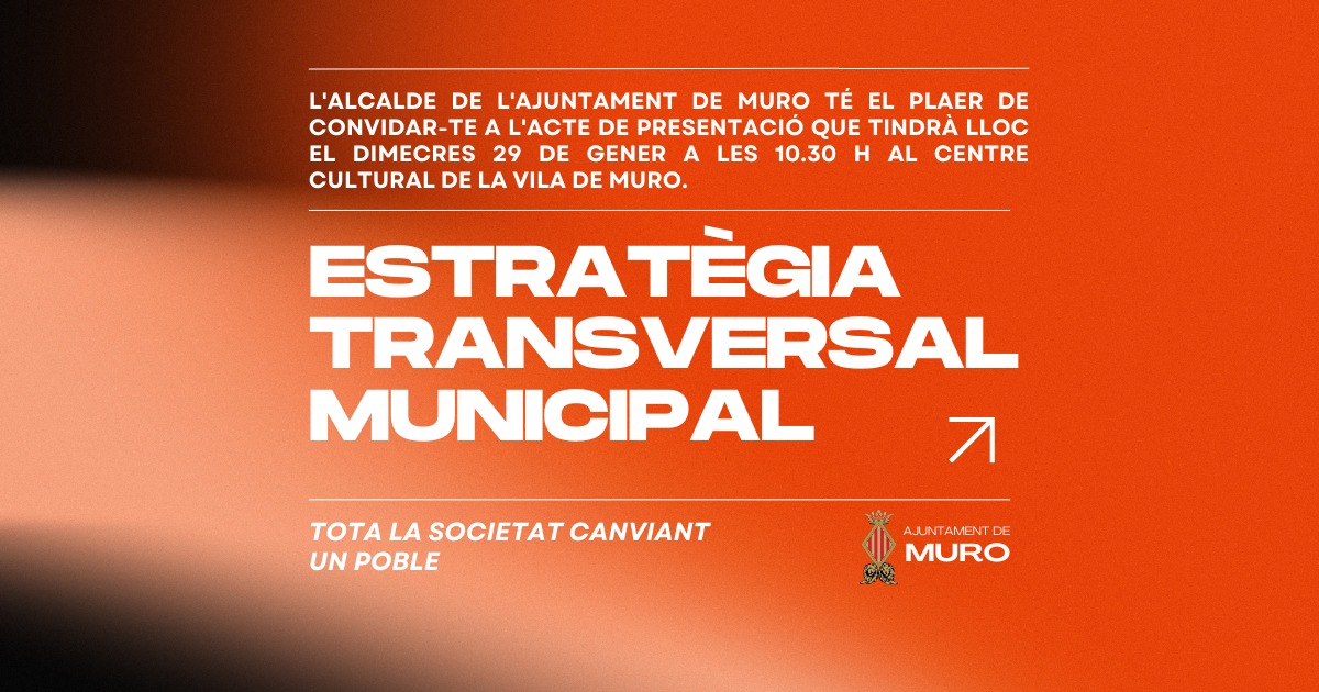 Muro presenta aquest dimecres la nova estratègia transversal municipal que canviarà el paradigma del municipi Muro s’enfronta en aquesta legislatura a grans reptes com ara ... Llegir més