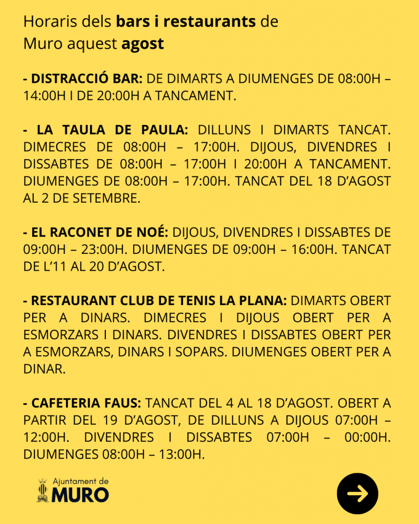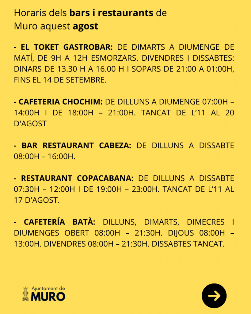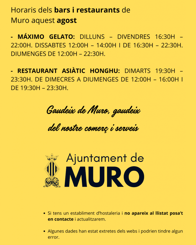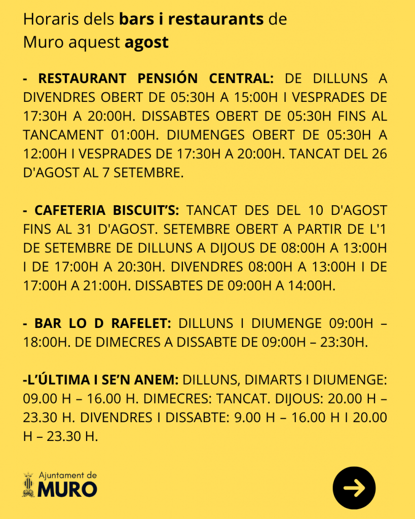 Horaris dels bars i restaurants de Muro aquest agost