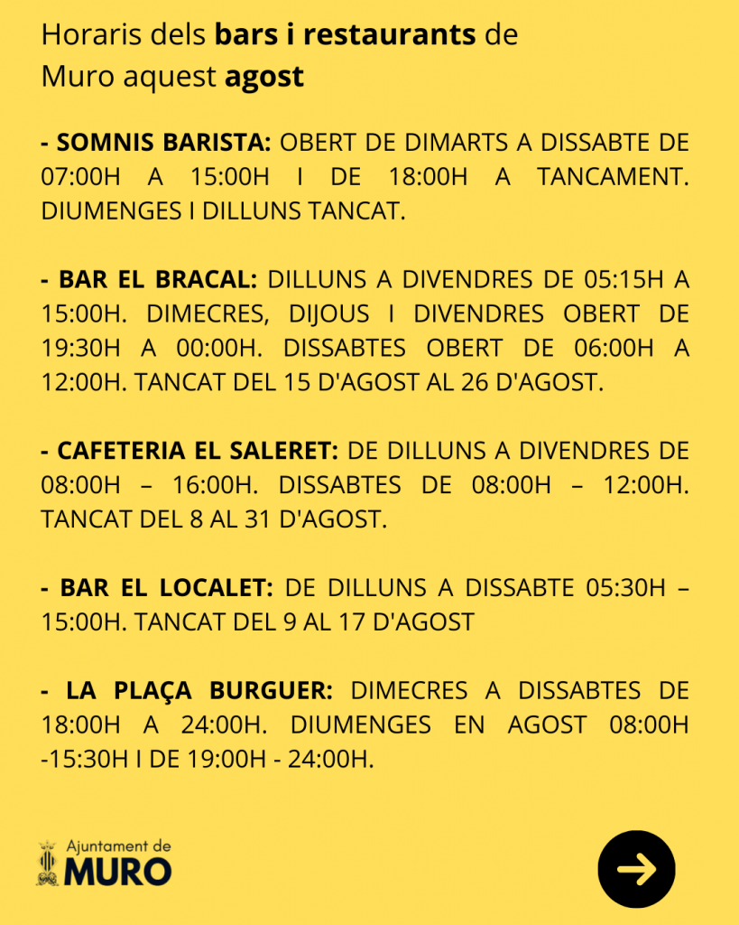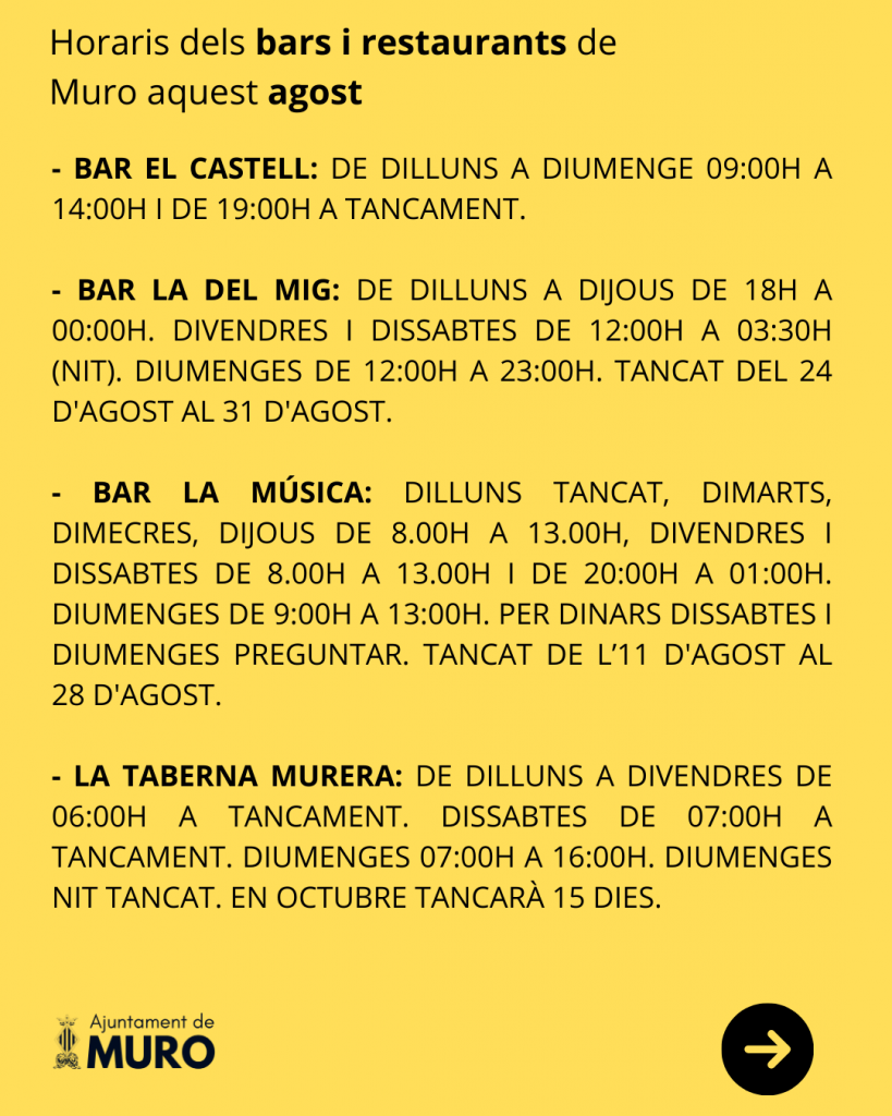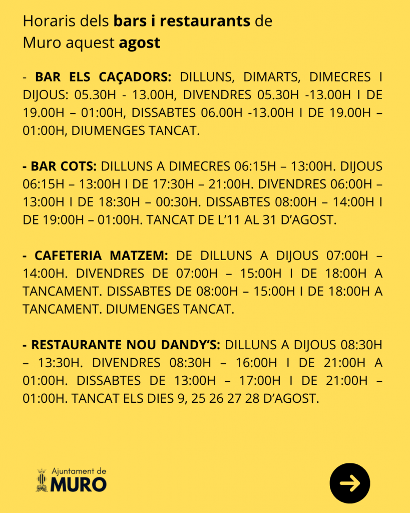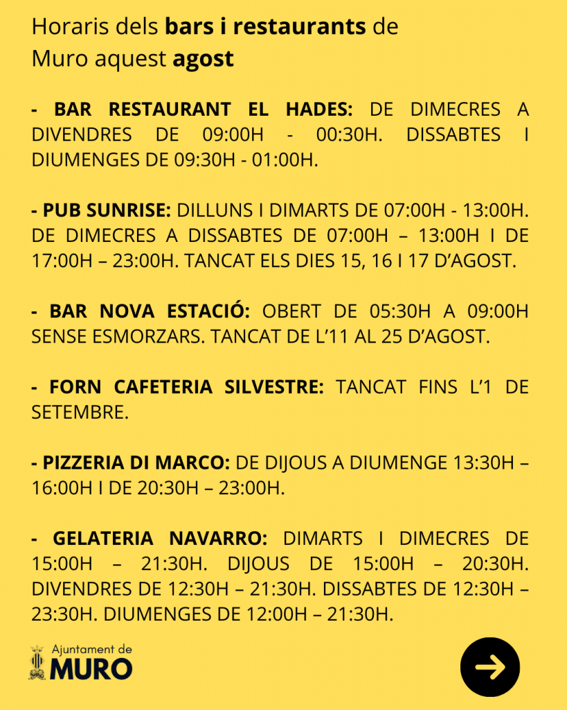 Horaris dels bars i restaurants de Muro aquest agost