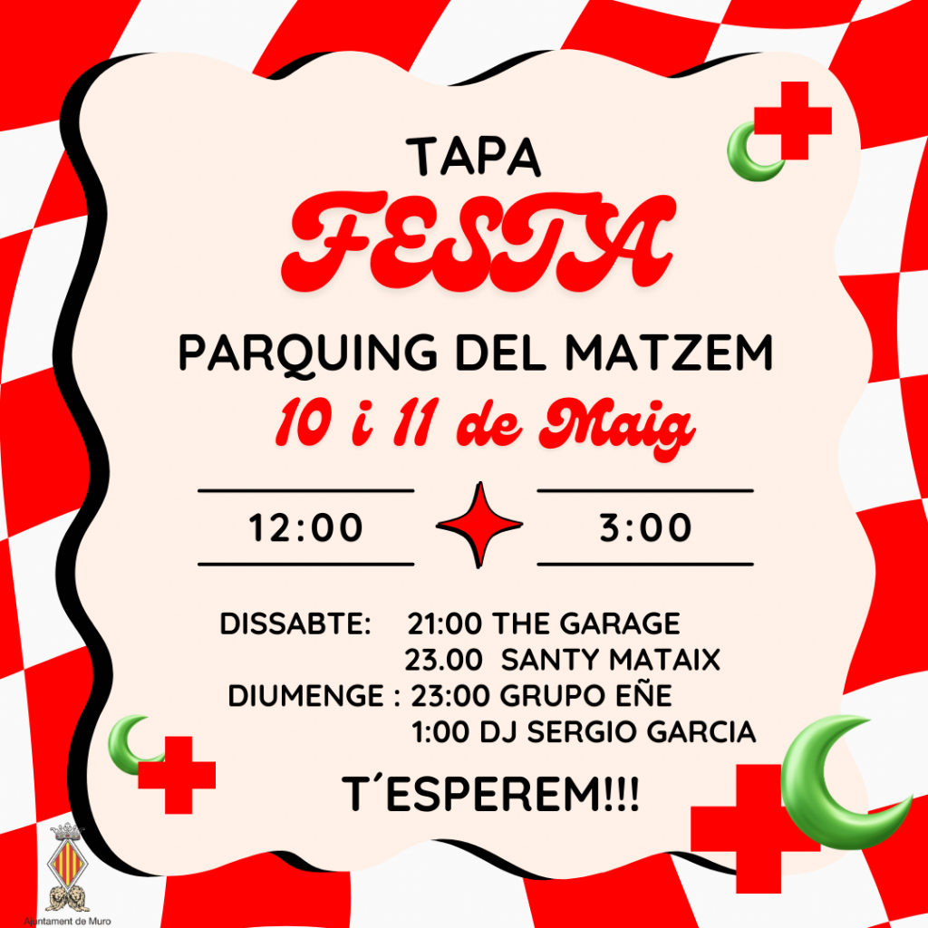Tapa Festa, una proposta oberta i festiva que se celebrarà els dies 10 i 11 de maig al pàrquing del Matzem. Des de les 12:00 del migdia fins a les 3:00 hores de la matinada, el públic podrà gaudir d’una àmplia varietat de tapes i d’ambient musical.