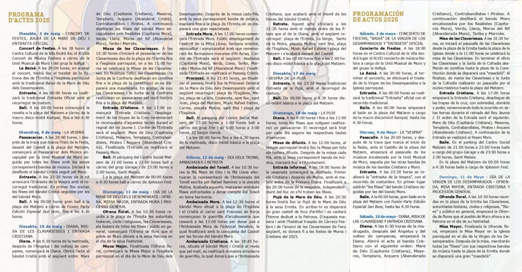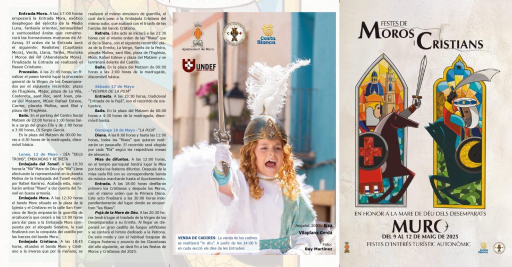 Muro ja està immers en els Dies Grans de les seues Festes de Moros i Cristians en honor a la Mare de Déu dels Desemparats. Des d’aquest divendres fins dilluns 12 de maig, els carrers de la vila bategaran amb més intensitat que mai gràcies a una programació rica en actes tradicionals, música, desfilades i moments de profunda emoció col·lectiva.